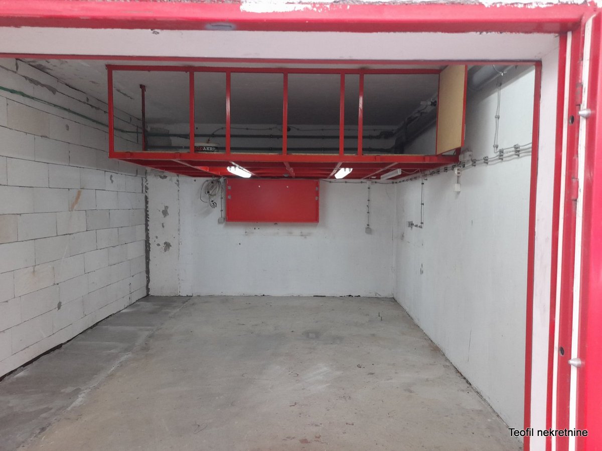 U ponudi je zidana garaža ispod zgrade od 24kvm, knjiženo na 17kvm,sa strujom i vodom, pogodna za više zanatskih delatnosti. Dimenzije 4x6, sa visinom od 3m.