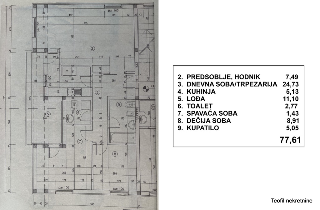 Uknjižen trosoban stan na drugom spratu kvalitetne četvorospratne zgrade (2006god.) sa urednim ulazom, a smeštena u blizini svih objekata infrastrukture poput: gradskog prevoza, prodavnica, škole, vrtića i sl. Odlična lokacija u mirnoj ulici blizu Autokomande. Luksuzno sređen sa odvojemim spavaćim blokom, dva kupatila, terasa… Prodaje se da sve kuhinjom i ugradnim plakarima. Za ostali nameštaj moguć dogovor. Grejanje EG na struju. Izuzetno je funkcionalan, sunčan, veoma svetao, trostrano orijentisan.