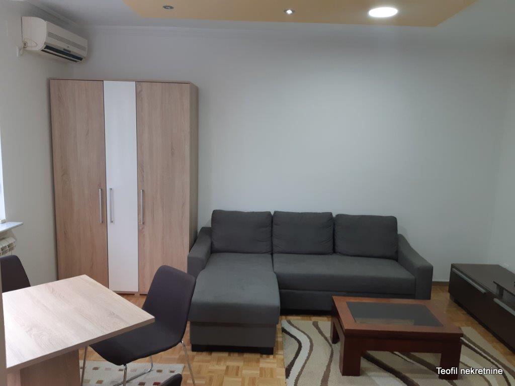 U prilici smo da Vam ponudimo savremeno namešten i opremljen jednoiposoban stan od 35m2 u novijoj zgradi na visokom prizemlju, visina kao prvi sprat, u blizini Bulevara Kralja Aleksandra, u mirnijem delu ulice Voje Veljkovića.