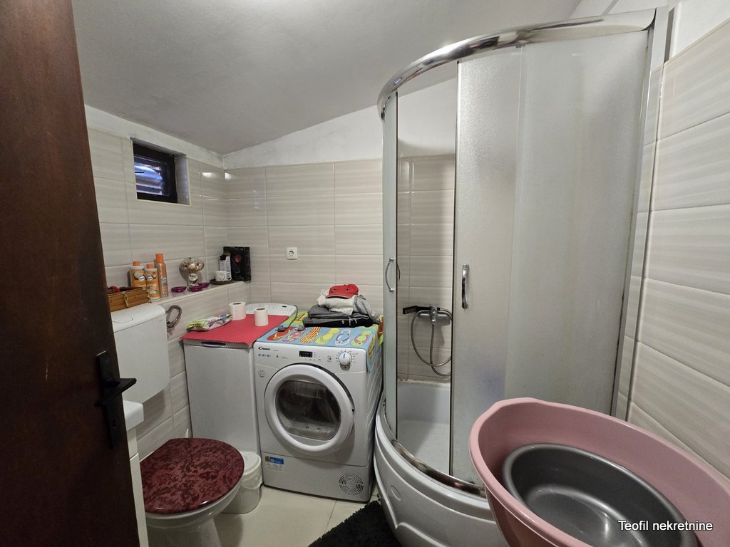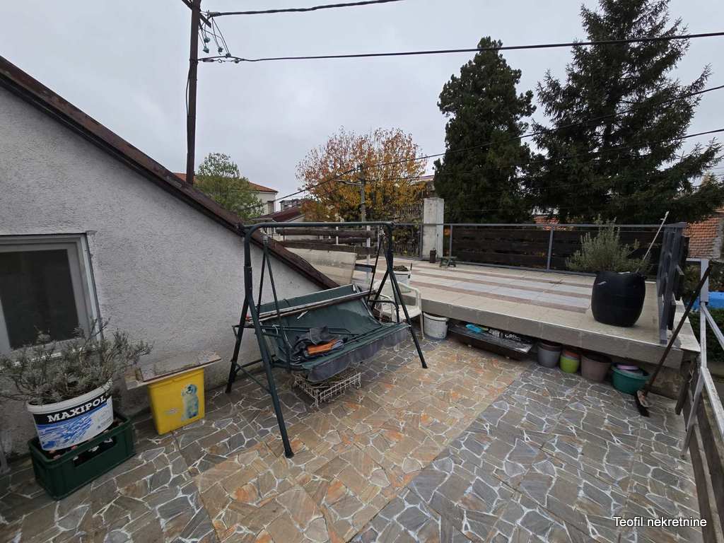 Uknjižena kuća je zaseban objekat sa ograđenim dvorištem. Iako dvorište nije veliko ima dodatna velika terasa od 35m2 koja pruža prijatnu atmosferu i privatnost. Garaža je sa strujom i mokrim čvorom pa je lako adaptibilna (po potrebi) u lokal.