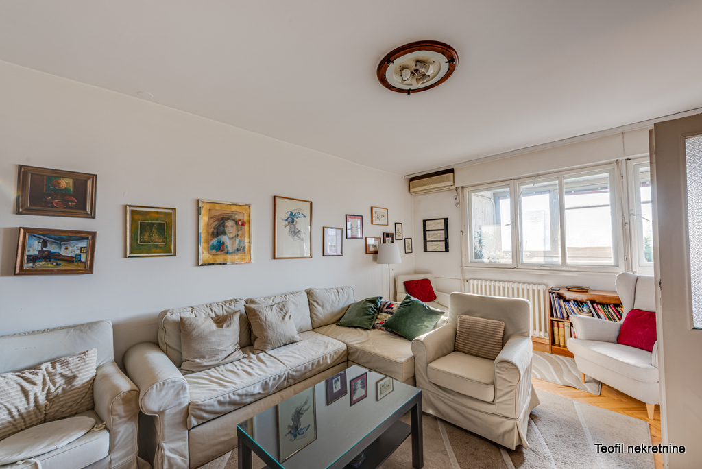 Renoviran dvoiposoban stan na najboljoj lokaciji na Banovom brdu. Sastoji se od dnevnog boravka, 2 spavaće sobe, kuhinje, hodnika, kupatila i 2 terase.